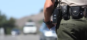 A police officer standing by traffic