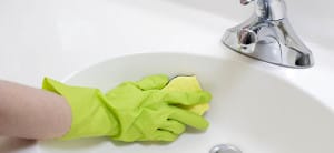 Cleaning Bathroom SinkBy GossipSociety / March 16, 2014 A person cleaning the bathroom sink with a glove