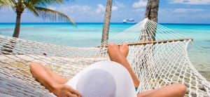 Woman relaxing on hammock with white hat